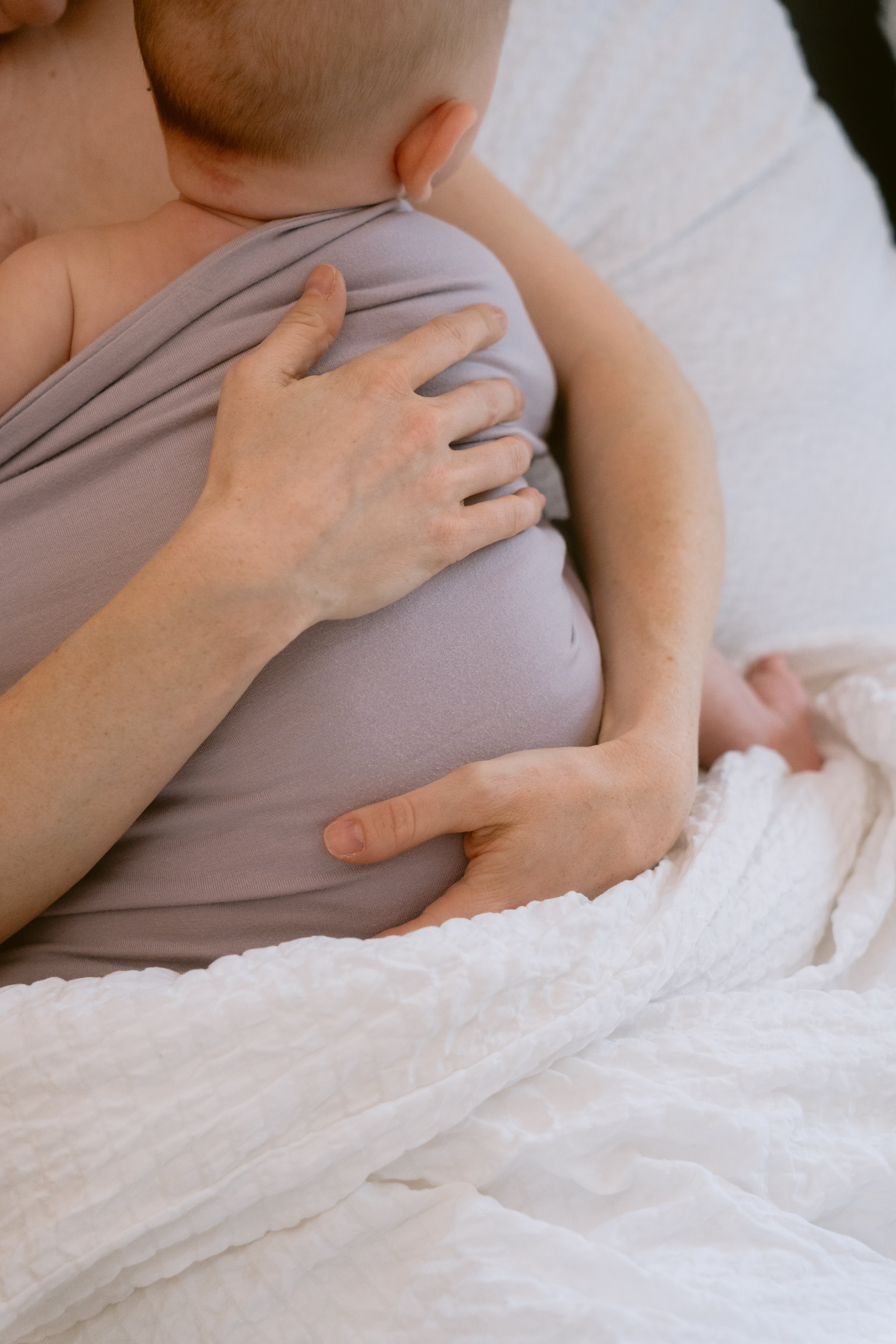 Easy to use. Two-sided fabric so you don’t even need to spend time figuring out which side goes next to the skin. It’s stretchy enough to adapt to your and your baby’s body changes, but it’s tight enough to help you hold your baby in a lying or half lying position; however, it’s not a carrier.