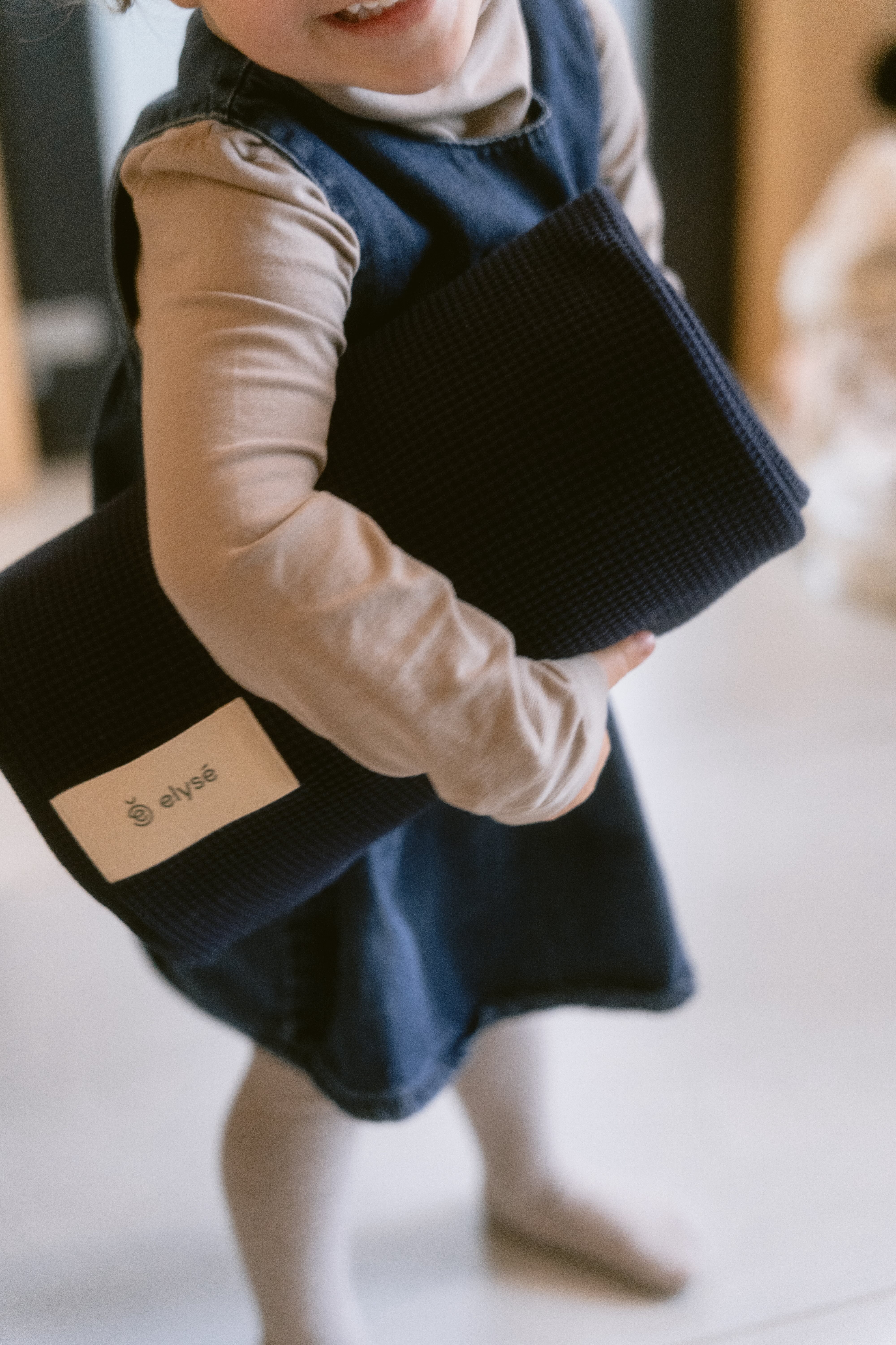 Our Stretchy Waist Wrap is a completely unique design: it’s only 2.4 meters long instead of the 4-5 meters of fabric usually used in stretchy wraps. This shorter length of fabric makes our wrap much easier to put on but it still keeps your baby completely secured. Our added waistband also makes the wrap easy to put on, and it supports your waist – holding your belly securely in the very sensitive first stages after giving birth.
